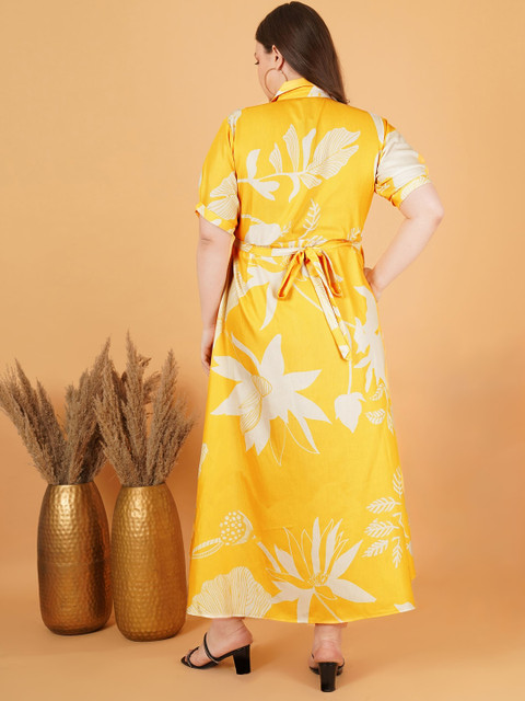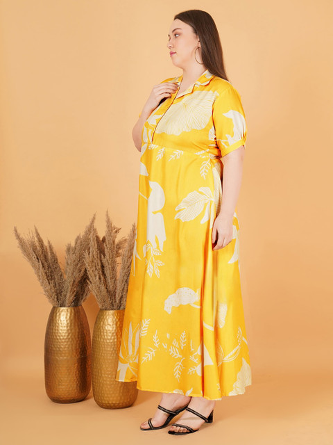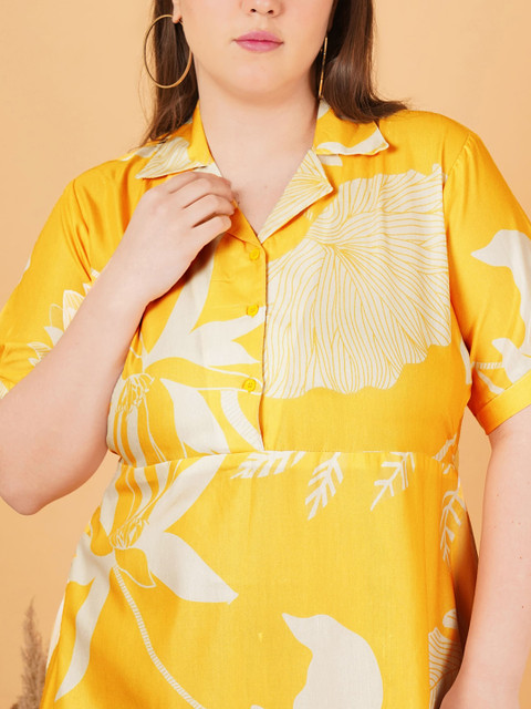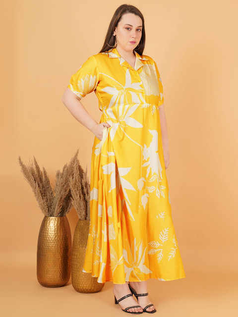 - Yellow floral print fit & flare dress