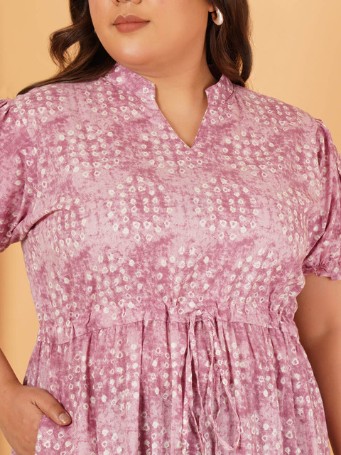 - Pink geometric print fit & flare dress