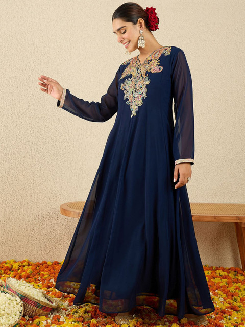 Be the first to review “Indo Era Embroidered V-Neck A-Line Tunic With Trousers Co-Ords”