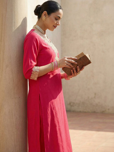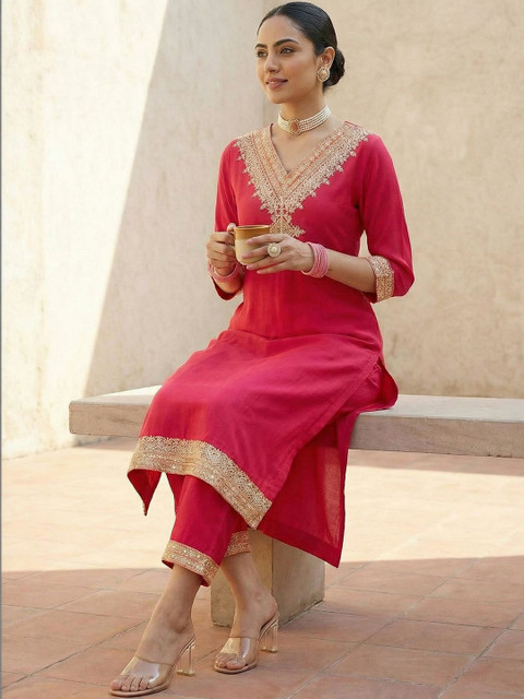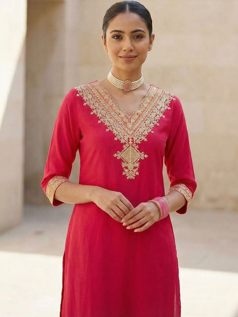 Indo Era Embroidered V-Neck Tunic & Trousers Co-Ords