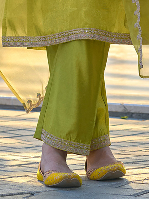 Green embroidered Kurta with Trousers & dupatta