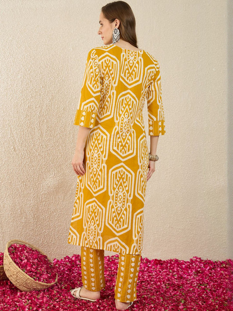Yellow & white printed printed trousers, has an elasticated waistband with slip-on closure has 2 pockets