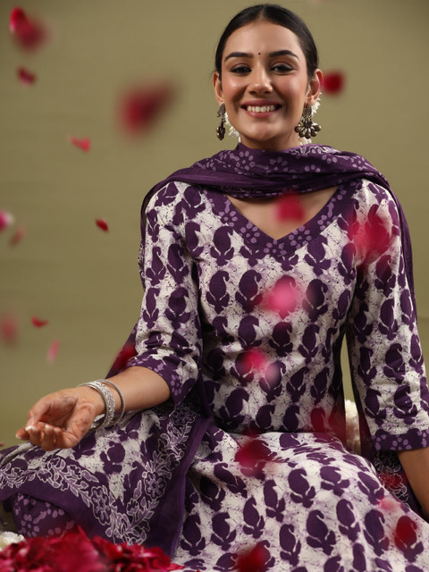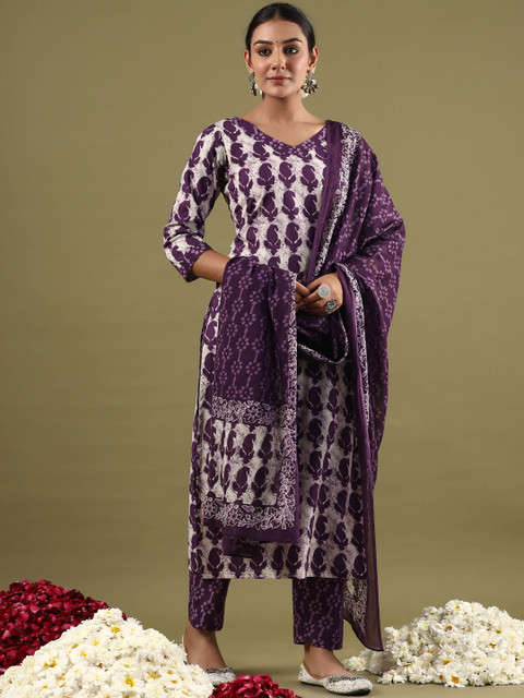 Purple printed Kurta with Trousers with dupatta