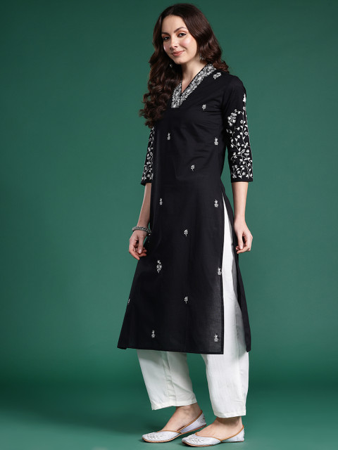 Loved this black kurta — it’s super elegant and comfy! The white embroidery adds a classy traditional vibe without being too loud. Perfect for office or casual outings. The fabric feels breathable too. Definitely a must-have if you’re into subtle ethnic looks! 🌸
