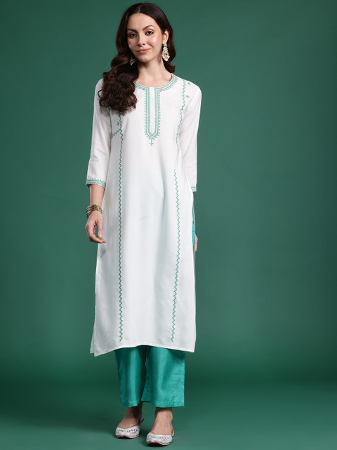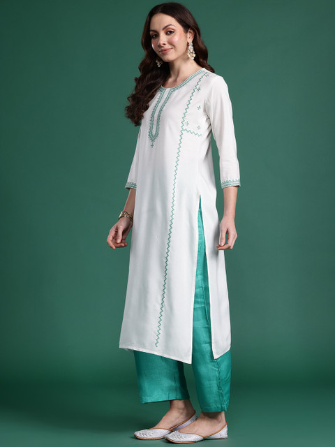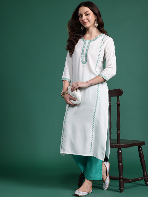 3 reviews for Indo Era Women Geometric Embroidered Thread Work Kurta