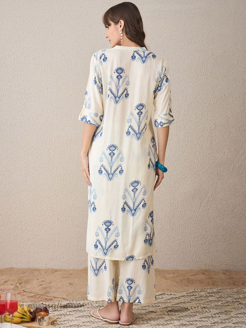 Off white printed Kurta with Trousers
