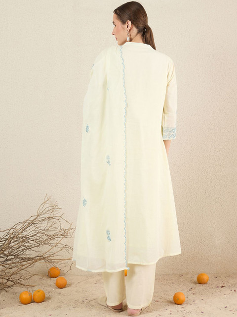 Off White & Blue Embroidered Kurta with Trousers & Dupatta