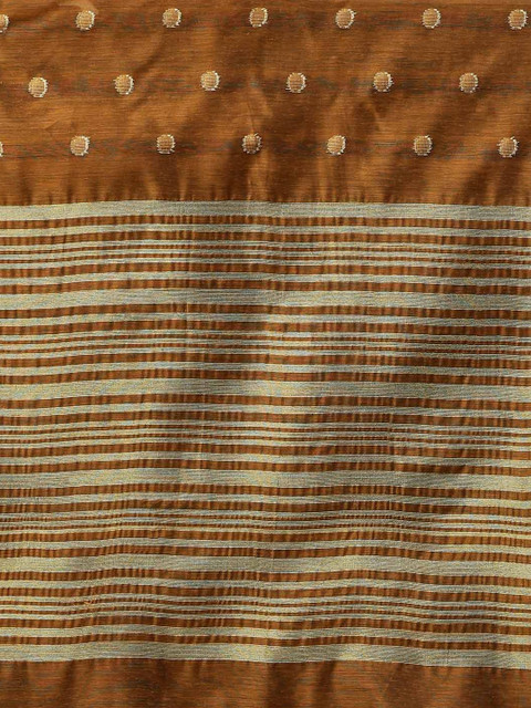 Brown and Gold-Toned Striped Woven Design dupatta, Tasselled border