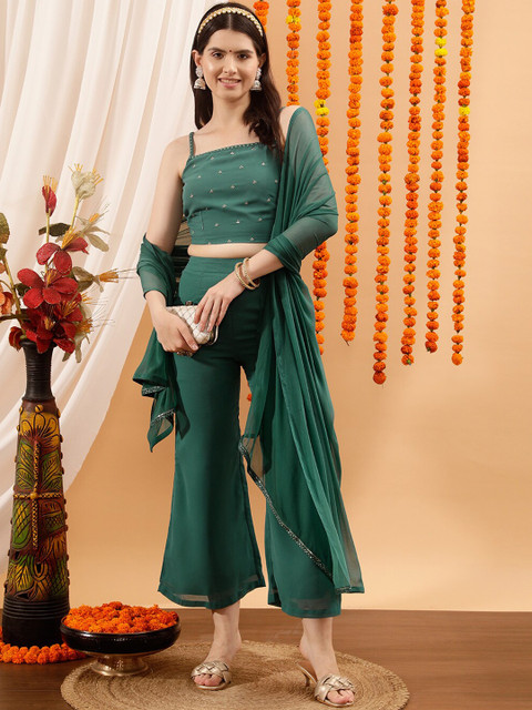 Turquoise blue solid palazzo, has waistband with slip-on closure and flared hem