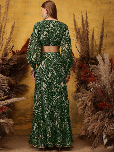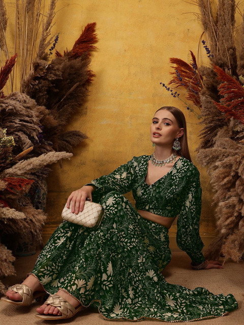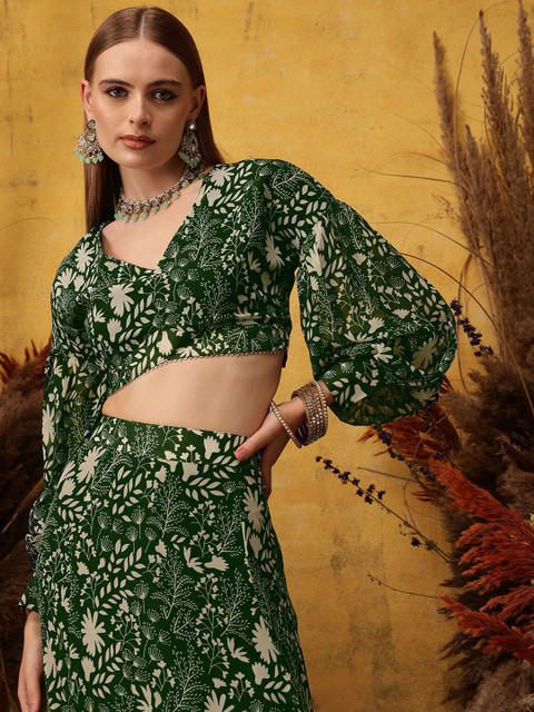 Green & beige floral printed mid-rise Skirts has slip on closure