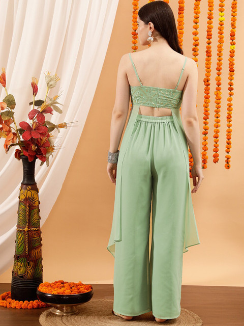 Green embellished top, has shoulder strap neck with side zip closure and regular waist hem with side panel