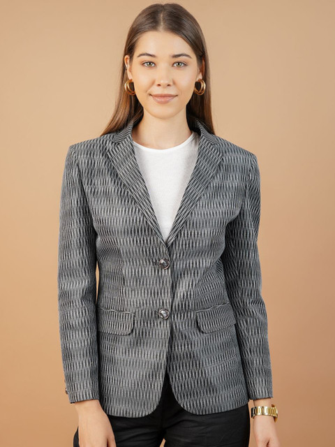 Grey & white self-design regular-fit single-breasted casual blazer, has a notched lapel collar, button closure, long sleeves, two pockets and single vented back hem