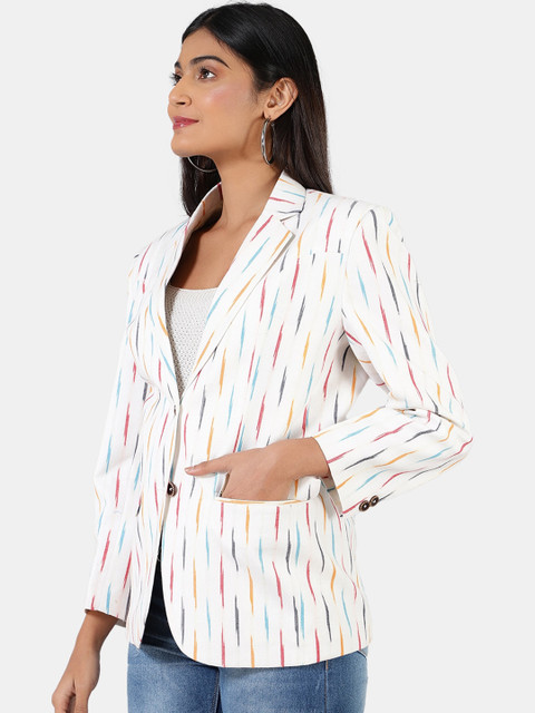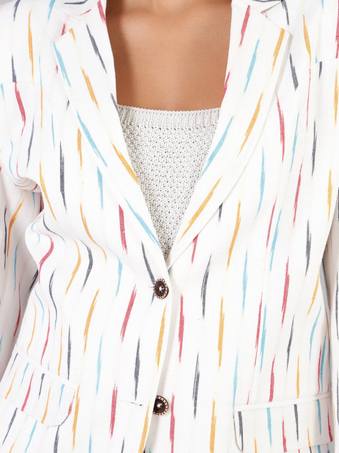 2 reviews for INDOPHILIA Single-Breasted Printed Cotton Blazer