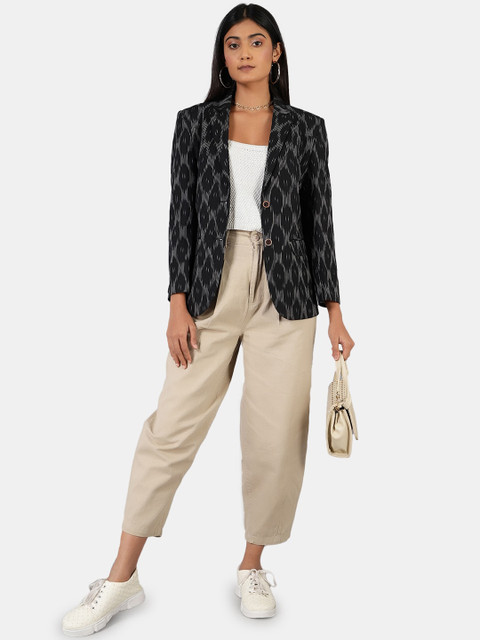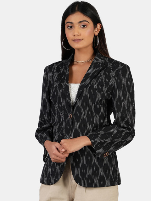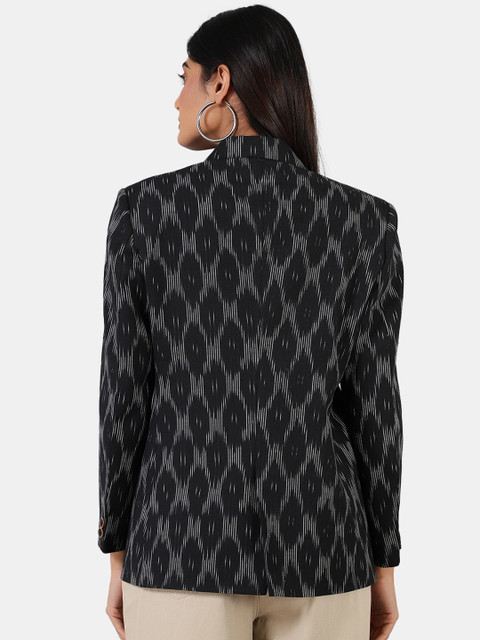 Black and white printed regular-fit blazer, has a notched lapel, single-breasted with a double-button closure, long sleeves, two pockets and an attached lining