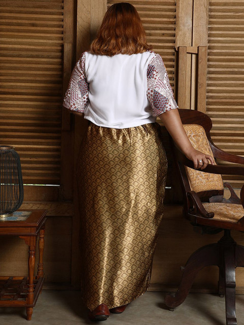 Yellow and grey printed skirt, has an elasticated waistband with slip-on closure