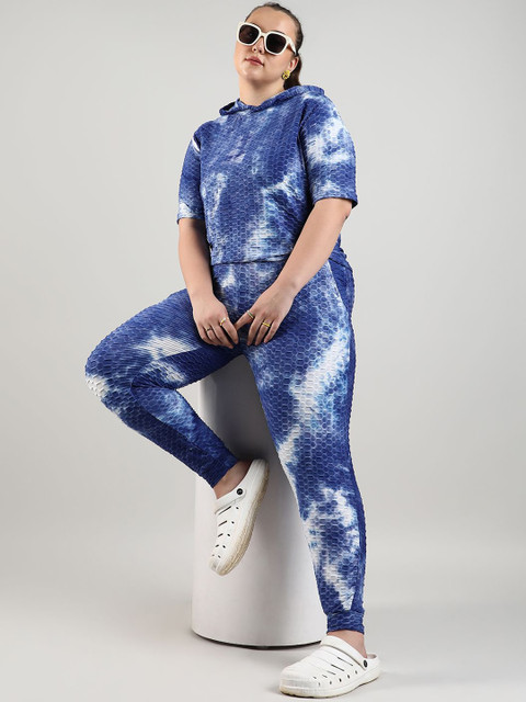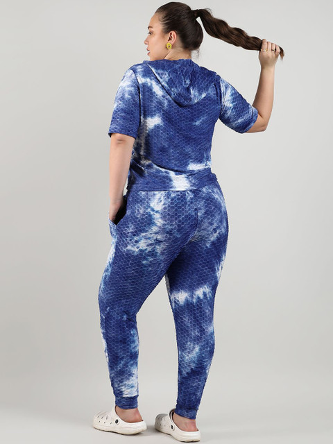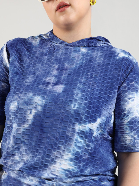 Blue dyed T-shirt honeycomb designed, has a hood neck , and short sleeves