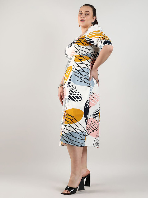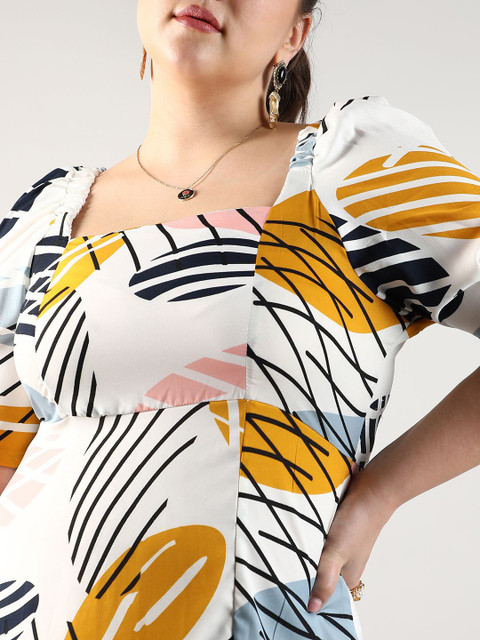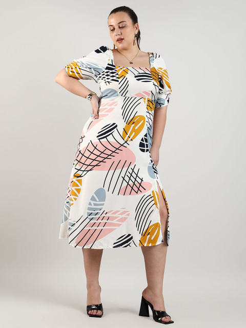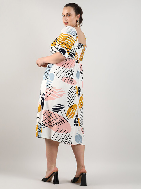 - White abstract print a-line dress