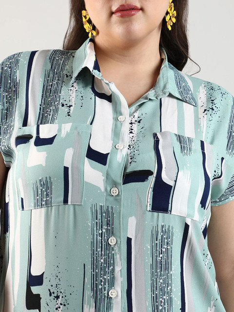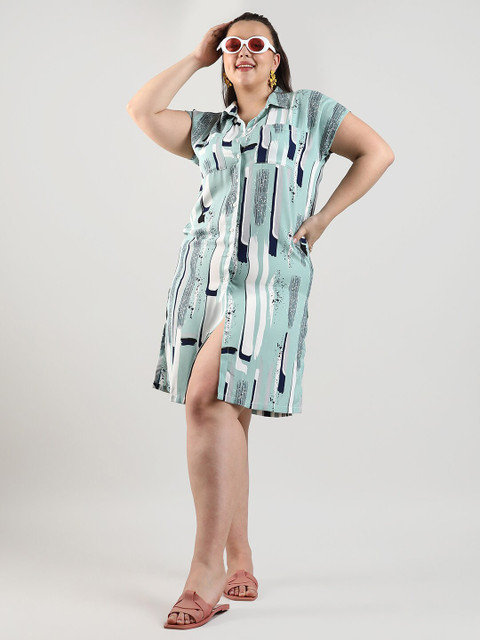- Green abstract print shirt dress