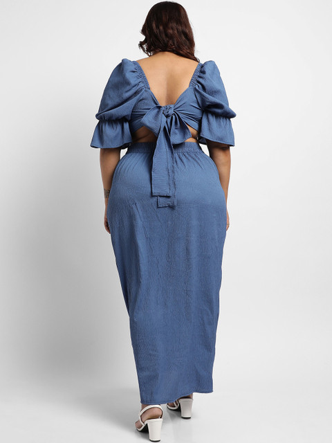 Navy blue solid co-ords has top and skirt