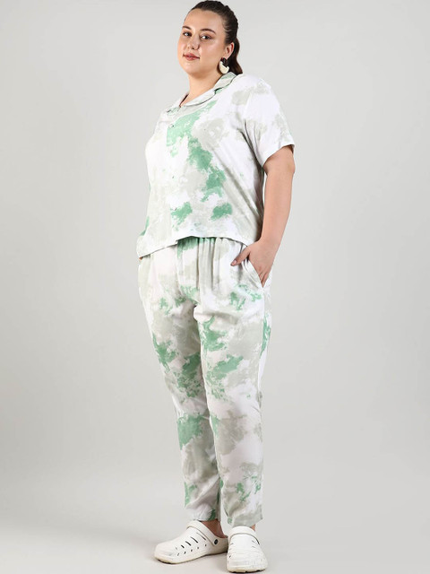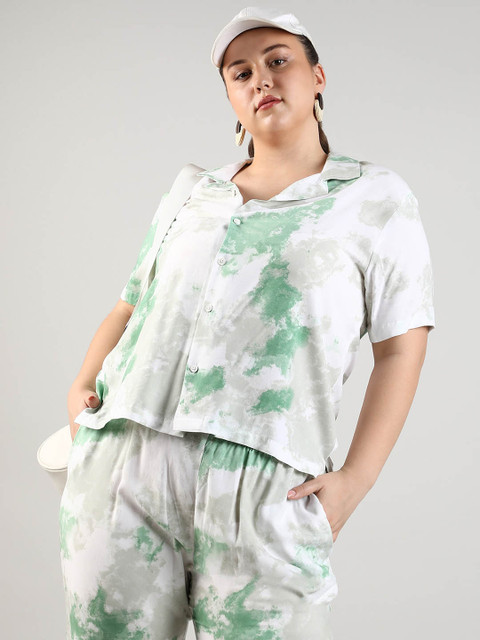 INSTAFAB PLUS Tie and Dye Cuban Collar Casual Shirt With Trousers