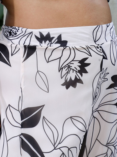 White printed palazzos, has an elasticated waistband with slip-on closure has 2 pockets