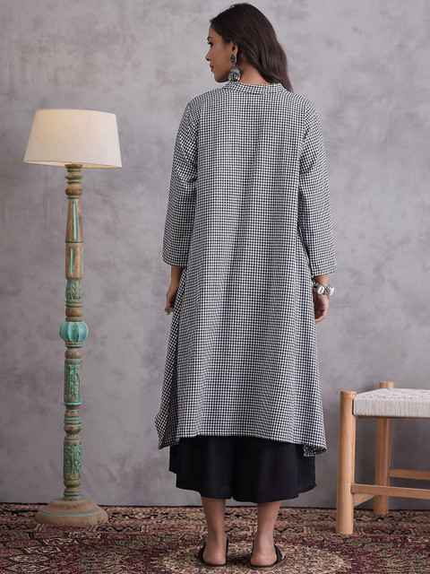 The classic black-and-white gingham check is timeless and gives a smart, clean look. Very versatile. The fit is relaxed but well-structured – perfect for both casual outings and semi-formal settings. It looks comfortable yet stylish.