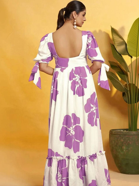 IRVAAH Floral Print Puff Sleeve Ruffled A-Line Maxi Dress