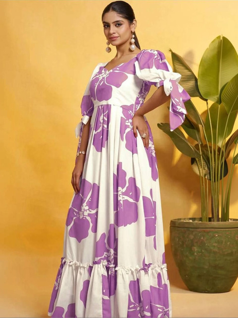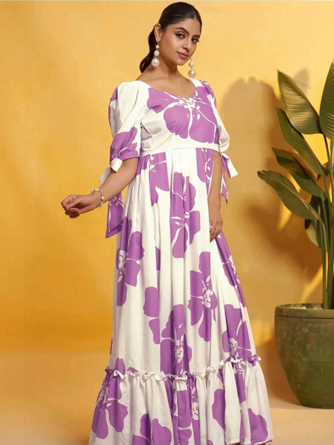 Be the first to review “IRVAAH Floral Print Puff Sleeve Ruffled A-Line Maxi Dress”