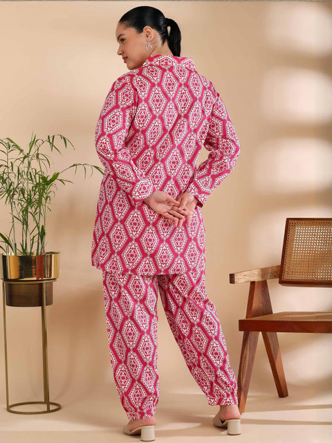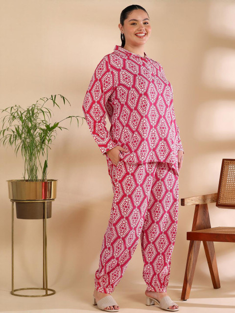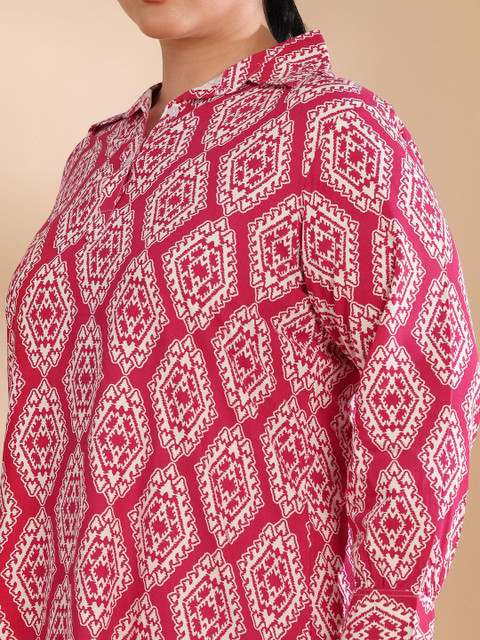 Multi printed shirt, has shirt collar, short sleeves with button closure and regular hem