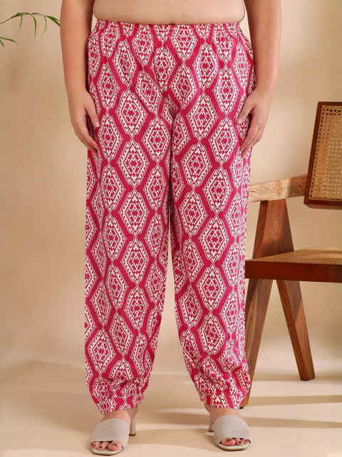 White floral printed trousers, has an elasticated waistband with slip-on closure has a pocket