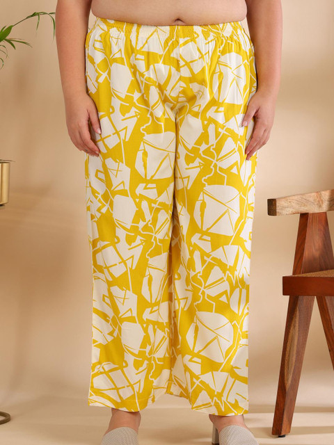 Yellow printed palazzo, has an elasticated waistband with slip on closure