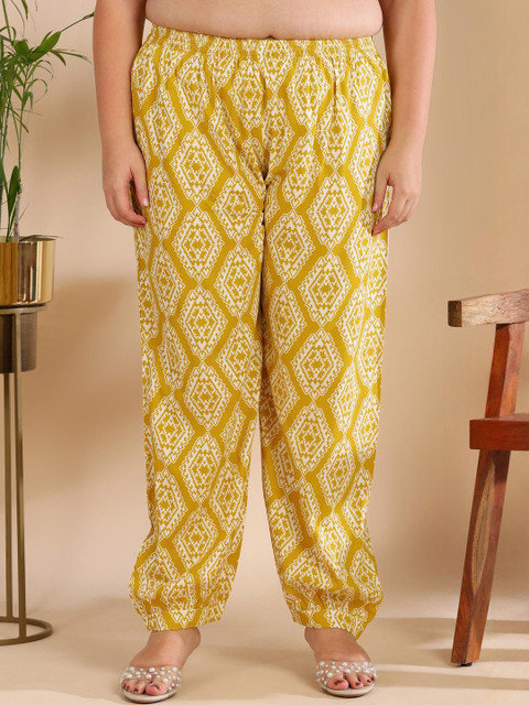 Yellow printed palazzo, has an elasticated waistband with slip on closure