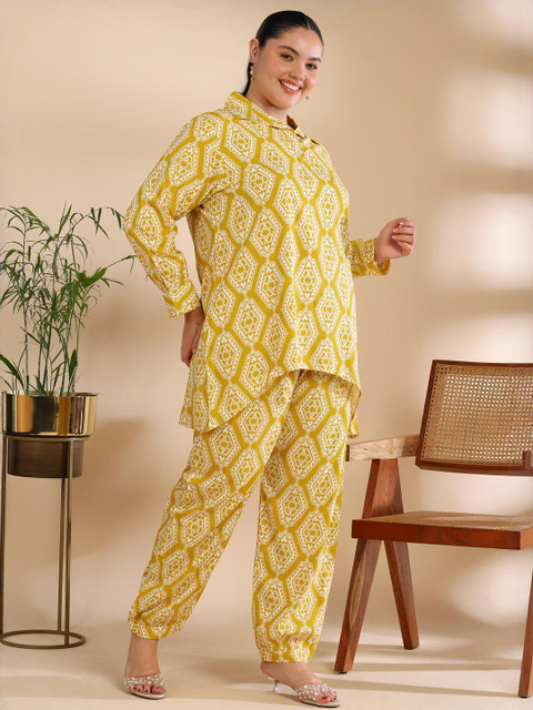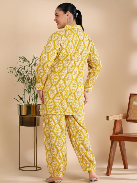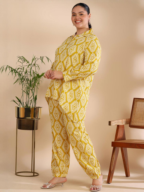 ISHQY Plus Size Floral Printed Pure Cotton Top With Palazzos Co-Ords