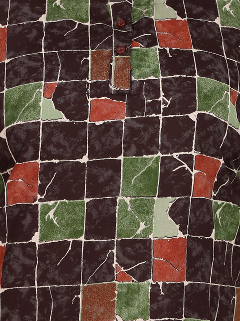 Multi printed shirt, has shirt collar, short sleeves with button closure and regular hem
