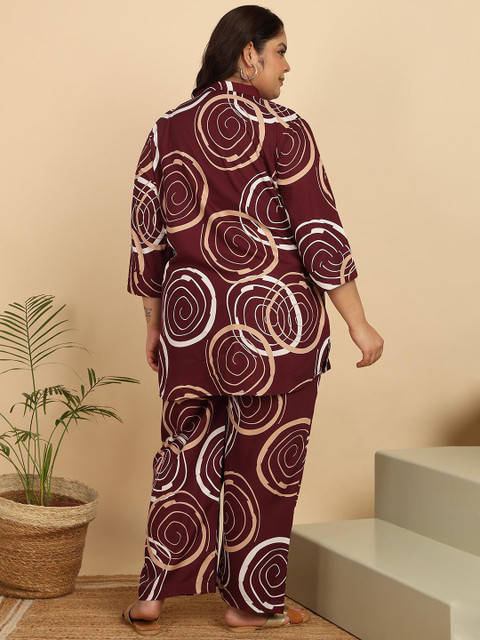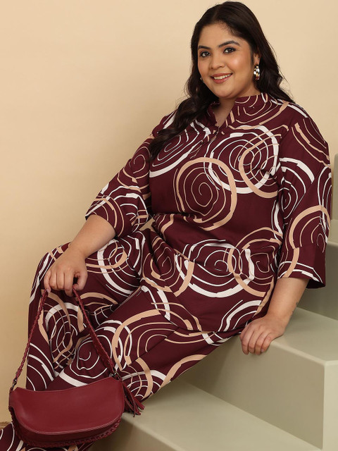 Maroon printed palazzo, has an elasticated waistband with slip-on closure