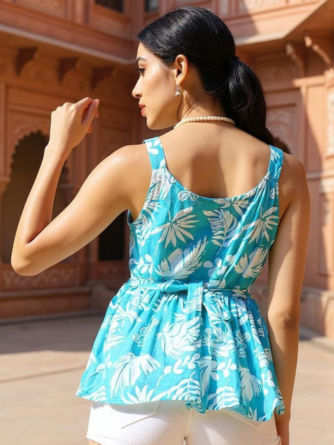 Istyle Can Women Floral Printed Cotton Peplum Top