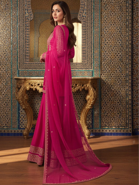 Kurta Material: Chanderi Silk Pant Material: Chanderi Silk Dupatta Material: NetCare : Machine Wash & Dry Clean