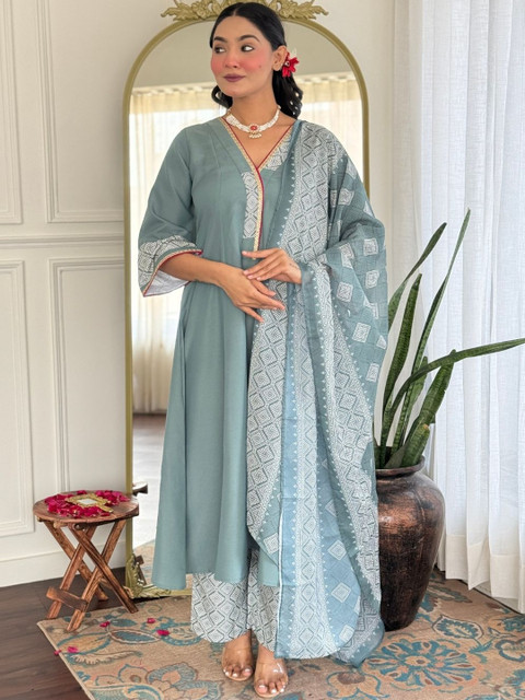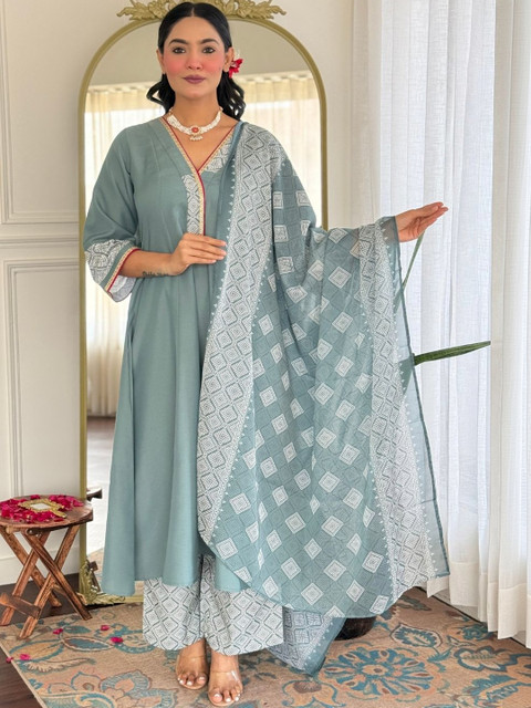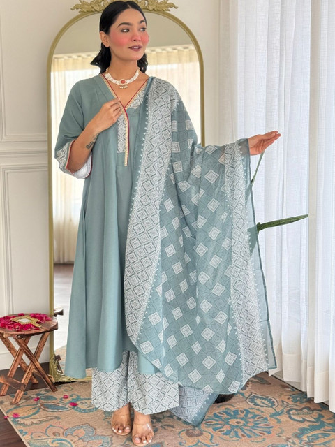 J.KANJI Women Regular Kurta with Palazzos & With Dupatta