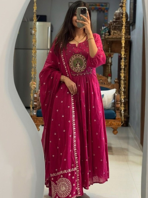Fuchsia embroidered Kurta with Trousers with dupatta