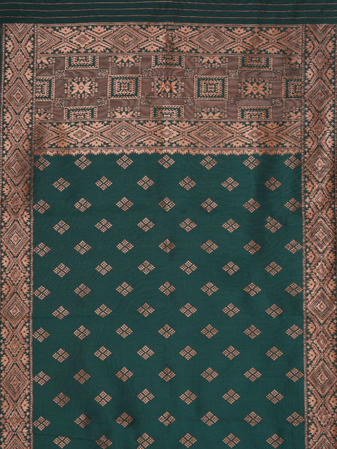 Olive green and gold-toned woven design kurta fabric and has Zari Detail
