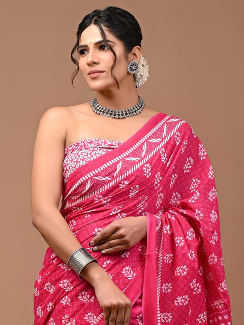 - Pink and white bagru saree