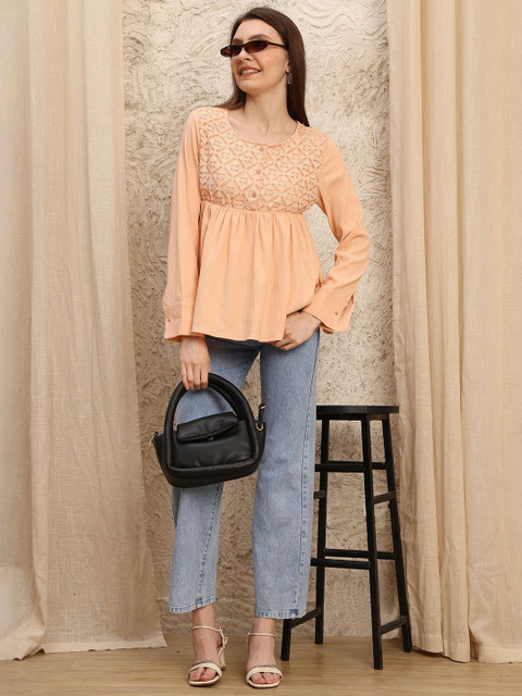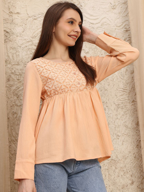 - Peach-coloured regular empire top