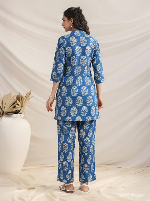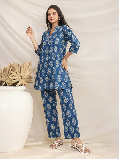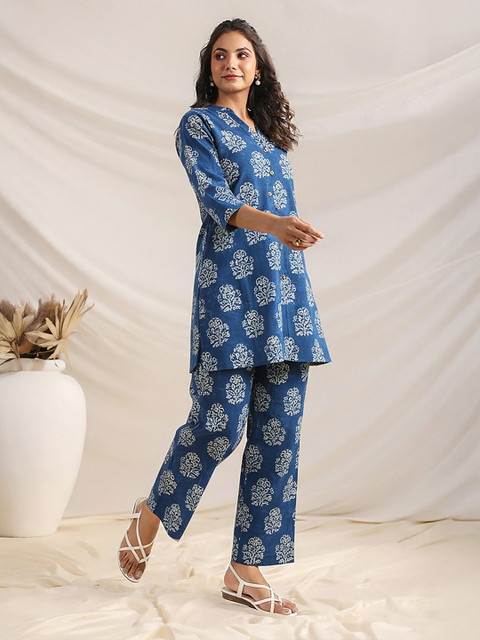 β”I absolutely love this co-ord set! The indigo floral print is stunning and very trendy. Being pure cotton, itβs incredibly comfortable for all-day wear. The fit of both the top and trousers is perfectβit gives a very polished yet relaxed look. Great value for a complete outfit.”