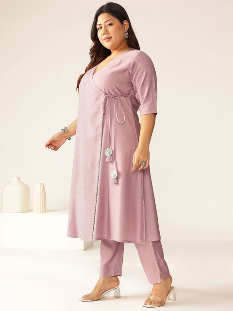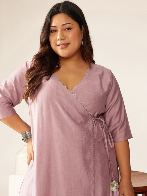 Lavender & white solid Kurta with Trouser
