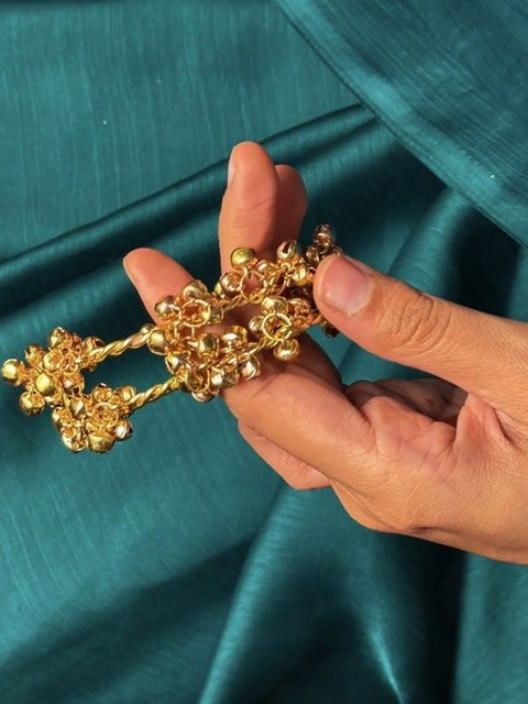 Set of two gold-toned bangles, each has with ghunghroo hangings details, secured with slip-on closure