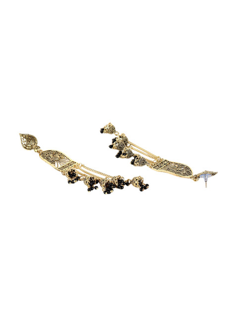 Black peacock shaped jhumkas, gold-plated, has pearls