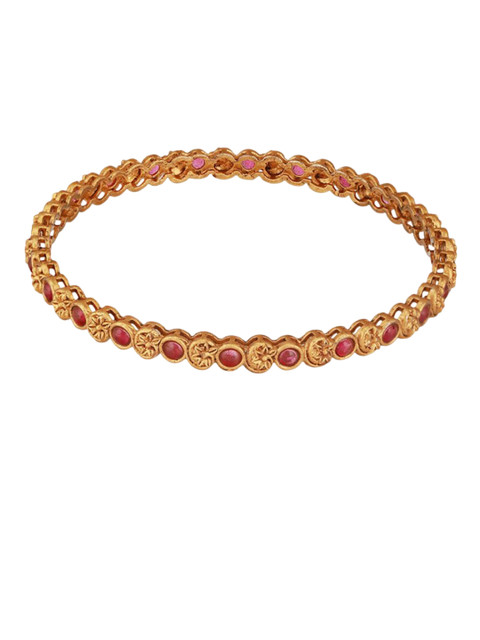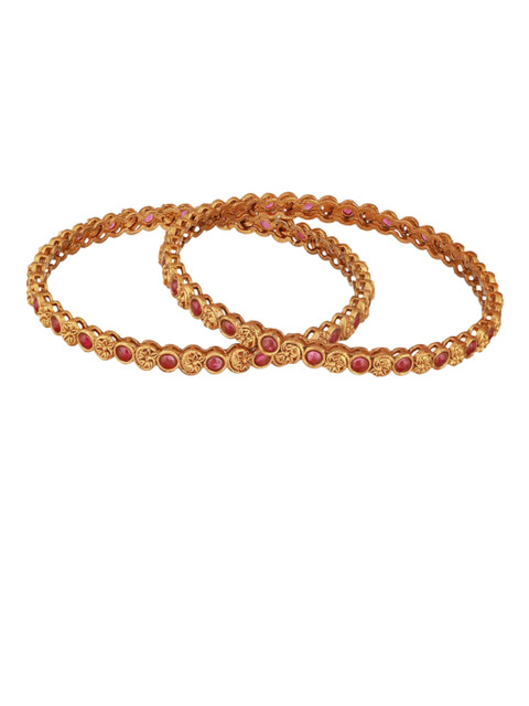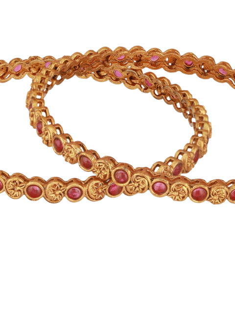 Set of 2 18k gold-plated bangles, each has pink magenta stone stone-studded details, secured with slip-on closure