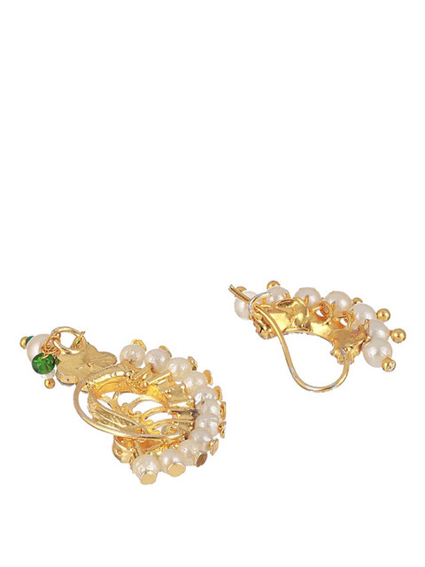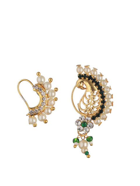 Jazz and Sizzle Set Of 2 Gold-Plated AD Stone-Studded & Pearl Beaded Nosepin