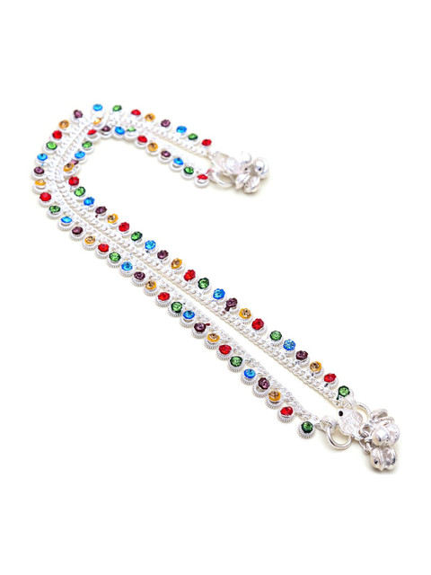 A Pair Of Silver Plated Cz multi-stone stuuded anklets
