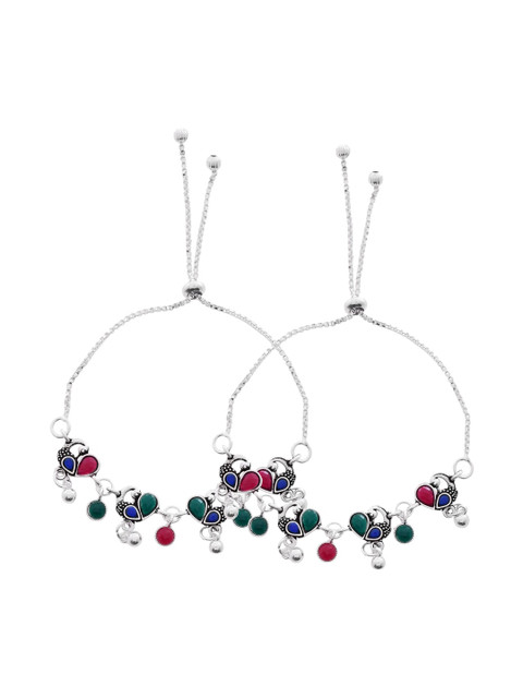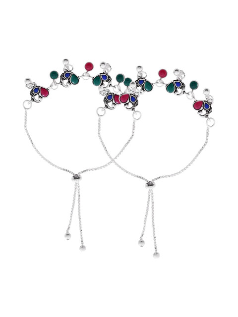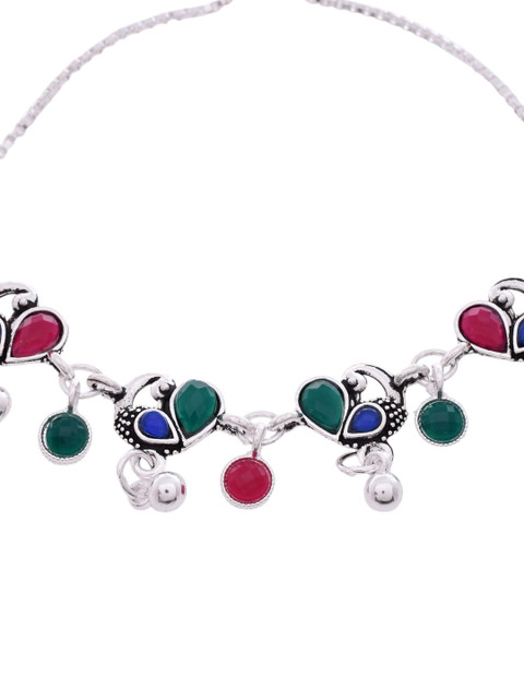 Silver-plated artificial stones and beads Studded anklet s-hook closure